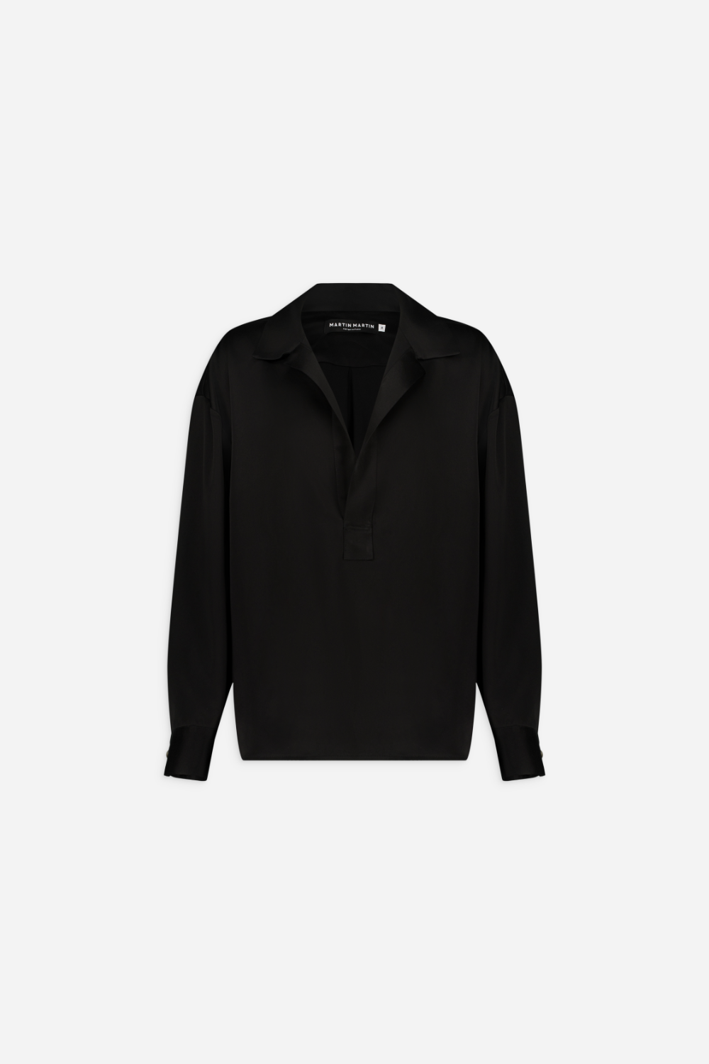 Chemise Martin Martin modèle Dan en crêpe. Blouse col façon tunisien sans boutons. Couture épaules basses Coupe ample avec des boutons aux poignets.