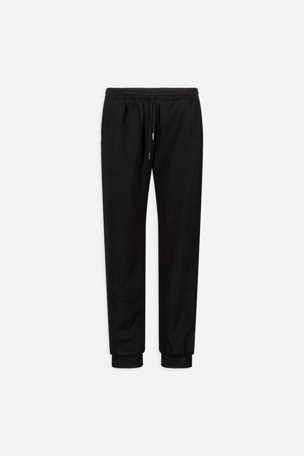 Ceinture à la taille élastiquée avec cordon de serrage. Le jogging a deux poches italiennes.